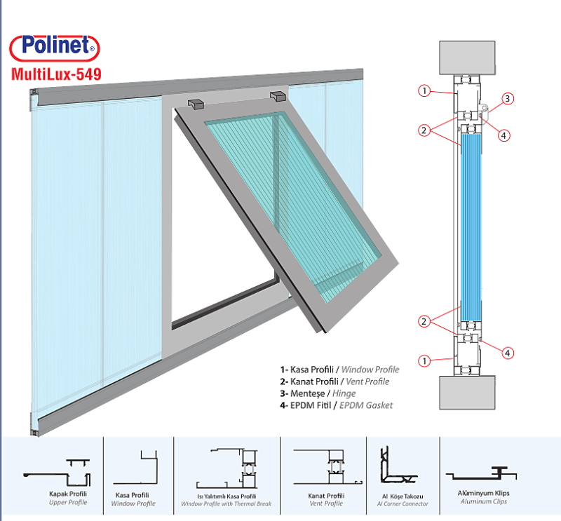 قطاعات المالتي لوكس : قطـاع بولـى كربونيـت يتناسـب نظـام MultiLux مـع جميـع أنـواع الواجهـات والحوائـط بالمصانـع والهناجــر والمــوالت والمطــارات وذلــك للحصــول علــي أكبــر قــدر مــن اإلضــاءه والعــزل الحــراري كمــا ان أنظمــة البولــي كربونيــت توفــر قــدر هائــل مــن الكهربــاء وخصوصــآ فــي المصانــع الضخمــة وتكــون مقاومــة للكســر